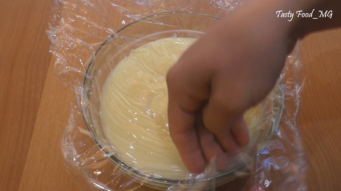 Переливаем полученную смесь обратно в кастрюлю. Отправляем на медленный огонь. Все время непрерывно размешиваем массу (особенно на дне). Как только заварной крем начнет закипать (то есть на поверхности будут появляться пузыри воздуха), снимаем с плиты. Добавляем в горячую массу 50 г мягкого сливочного масла, перемешиваем до полного растворения, затем полностью охлаждаем заварной крем.