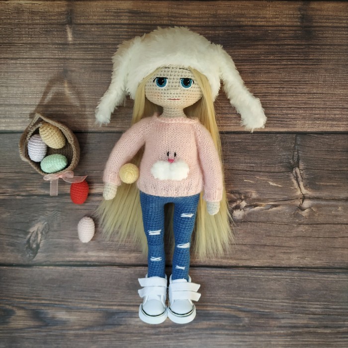 Связала я ещё пасхальную девочку, уж очень они мне нравятся, только в этот раз сделала другие глазки. Так личико выглядит как настоящее)