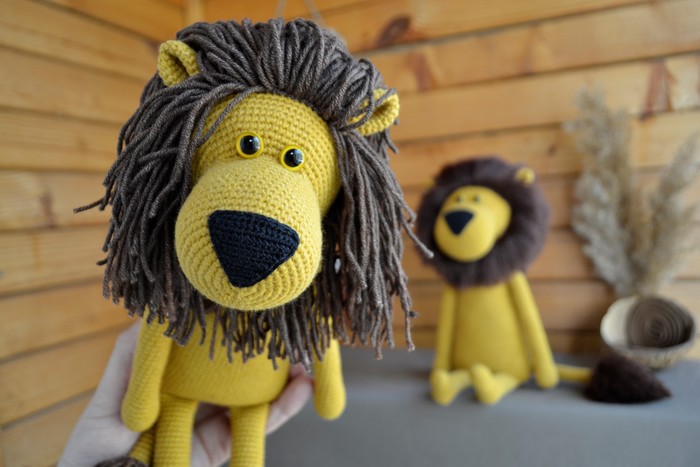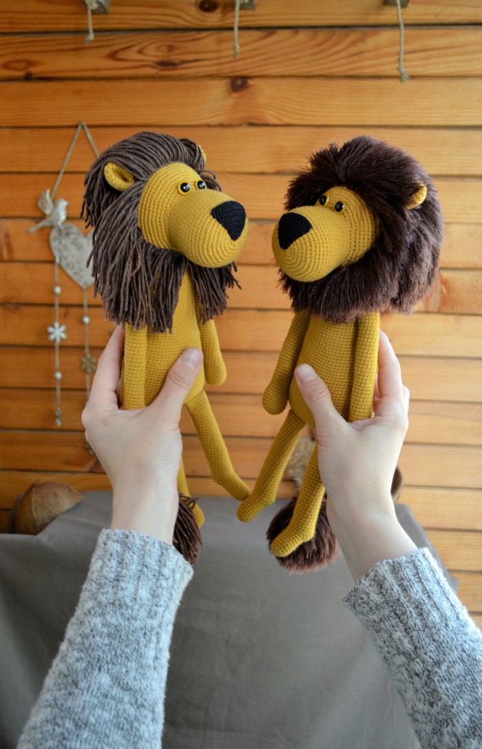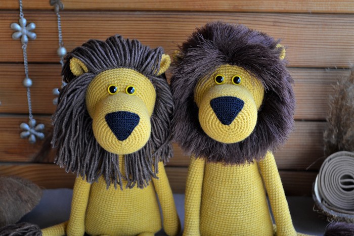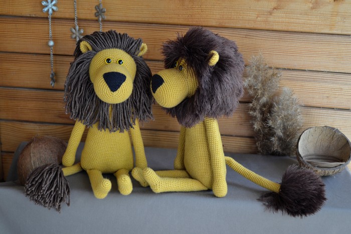 Связаны крючком, пряжа jeans, у мохнатого льва грива тоже связана, пряжа lanoso single.