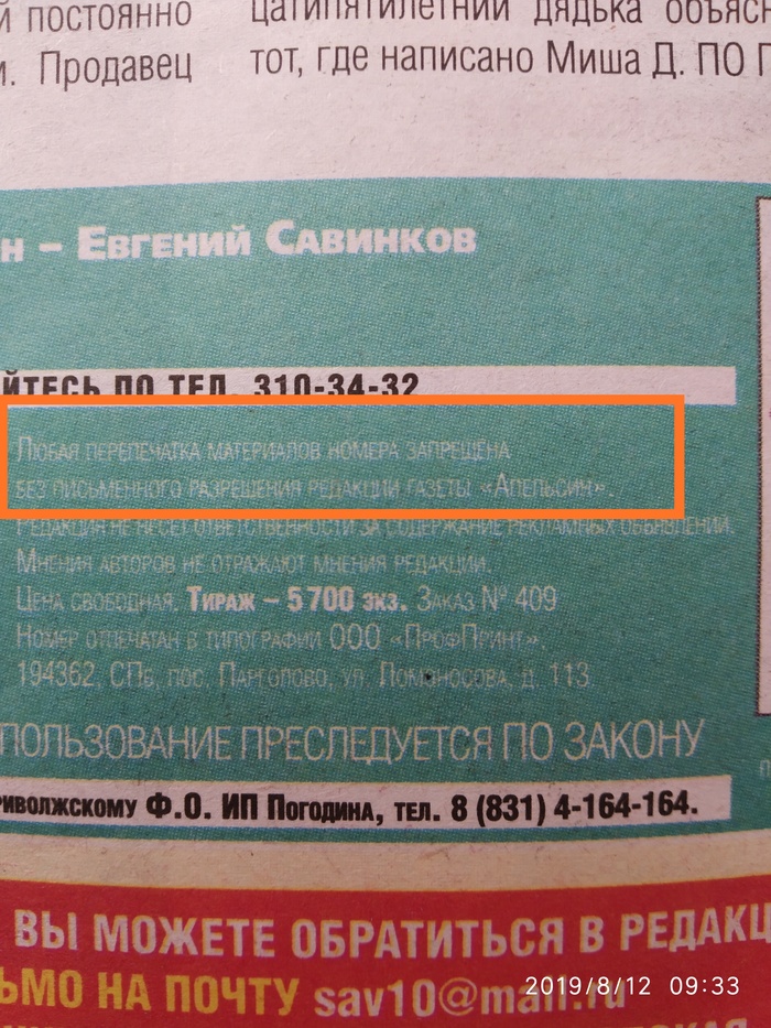 Вопрос только в том, что сама редакция "Апельсина" перепечатывать материал запретила, а с Пикабу они с разрешения берут или так, по дружбе?