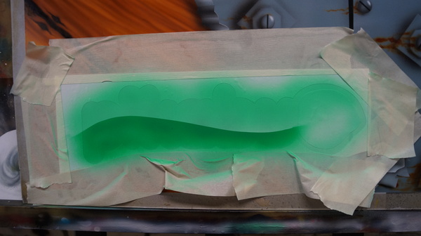 Зальем в аэрограф светло-зеленую краску и задуем фон