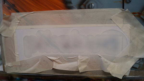 Продолжим. Фон готов, нарисуем волну на буквах, используем для этого синюю контактную ленту. Такую ленту, обычно, я использую при рисунках сложных элементов