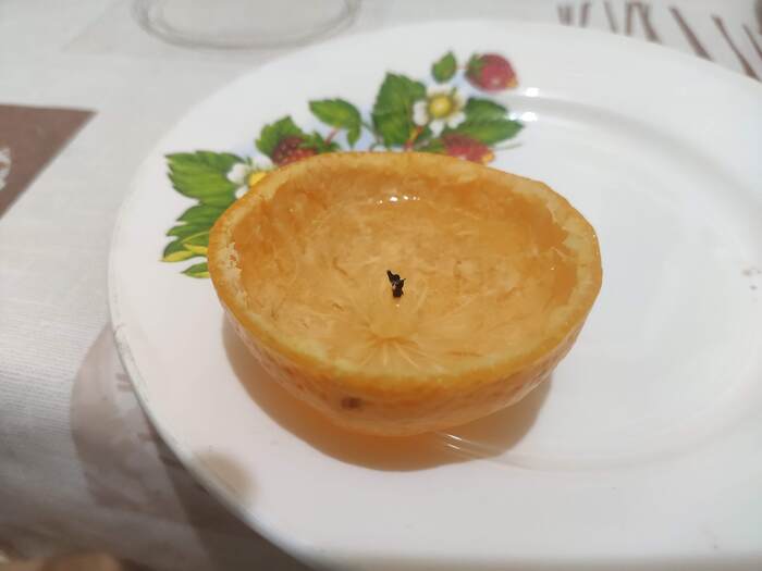 Сорян, но как почистить и оставить пипку видео не снял (не думал что получится с первого раза). Разрезал пополам вдоль экватора. Пипка находится со стороны крепления мандаринки к ветке. Ножом, аккуратно, по периметру открепил дольки от шкурки и вытащил их, пипка осталась на месте. Залил маслом подсолнечным, оставив немного пипки сверху (на неё тоже полил) и поджог, даже не дожидаясь пока пропитается.