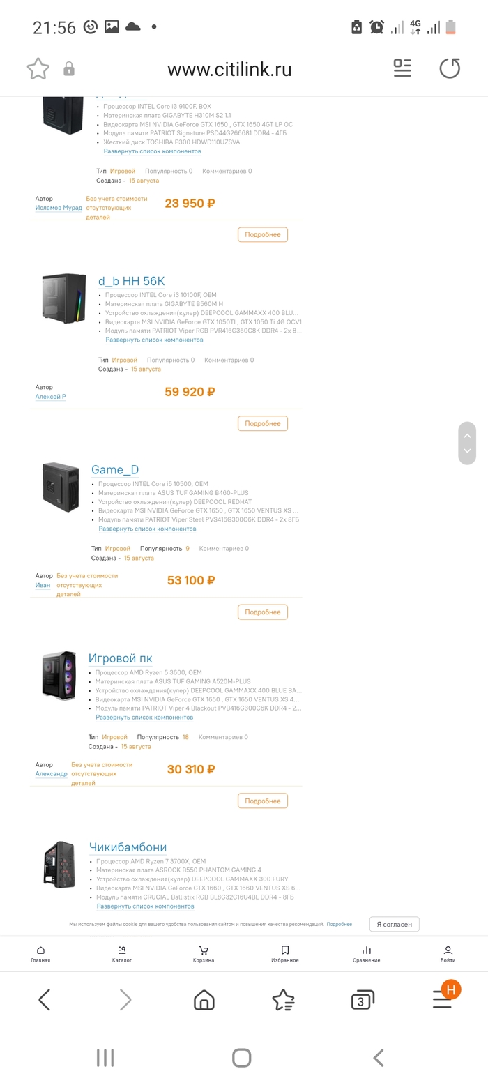 Зашёл на сайт Ситилинка, чтобы посмотреть себе ПК, далее на скринах.