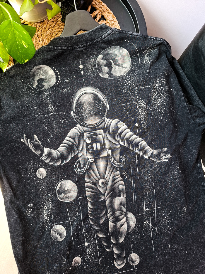 По концепции - заказчику нельзя вмешиваться в создание макета. Никаких "мы посовещались с семьёй и наша собака решила, что будет нарисовано..." нет, этот момент я отсекла еще в бытность графическим дизайнером во избежание внеплановых визитов в ПНД. Макет я придумываю сама, если вам это не подходит - ну штош тут поделать. А на космо-футболку человек дал чёткое тз (я не знаю как так вышло, магнитные бури или звезды сошлись в фразу "да едрись оно конём") причем у него по этому тз даже ИИ облажался и нарисовал не то, что он хотел ¯\_(ツ)_/¯ А я, вот такая пися-бабочка, осмелела и решила, что у меня получится