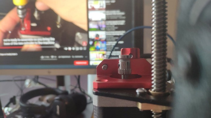 2. Длина вала короче и одна часть механизма не достаёт до отверстия для подачи филамента. Много не достаёт (на фото я затянул шестерню на самую кромку вала)