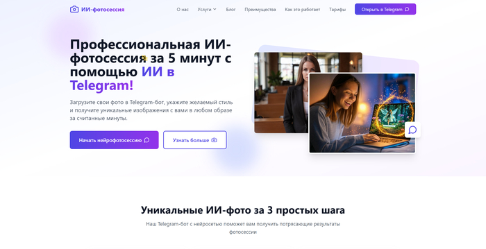 Если нужна нейрофотосессия онлайн по фото без браузера, II-Photo решает задачу. Достаточно запустить бот, отправить селфи и задать стиль; готовая AI-фотосессия прилетит прямо в чат.