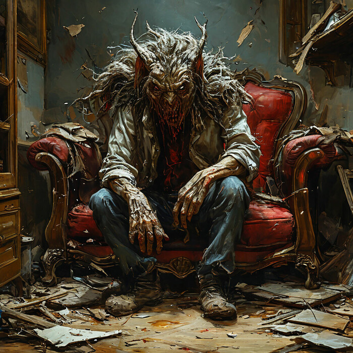 А потом пришла мысль, - если ОН на диване спит, кто же тогда другой ОН, который по комнате летает? Подлетел к зеркалу, чтобы отражение увидеть, и в этот момент проснулся. Утром прошелся по дому, на третьем этаже инструмент по всему полу разбросан. Когда падал, наверное, такой грохот стоял… странно, что не разбудил ночью. На первом этаже вся одежда на полу валяется, а на кухне стакан разбитый. Все, как было во сне!