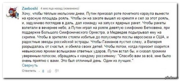 MaxMyT31 10 лет назад Одно из лучших желаний Владимир Путин Рояль США Санкции Сша и Россия Юмор Лучший день