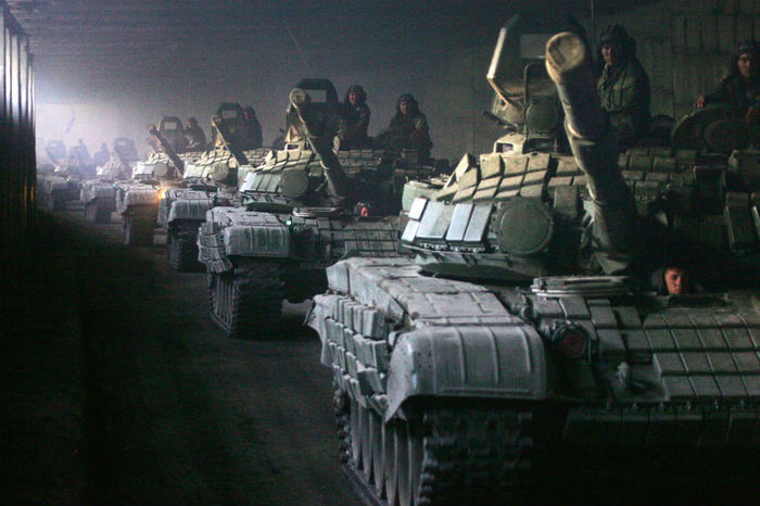 Воздухозаборник, помните про прозрачность, так вот: при разработке и эксплуатации танка с двигателем типа ГТД (газотурбинный ) возникла проблема, имя ей: чистый воздух, возникла она ещё при танке Т-64, с его задним выхлопом, но это другая история. ГТД требователен к качеству топливной смеси, и её обогащённости кислородом, что не так критично для ДВС (хотя критично, но не так, верьте мне). Когда танки двигаются в составе колонны (как на фото ниже, почему данное фото с Т-72Б, а не Т-80, мне просто понравилось данное фото, напомнило БФ бэд компани 2, там был момент в аналогичном тоннеле, и я фанатею от Т-72Б образца 85 года), то проблема стаёт ребром даже без пустынь.