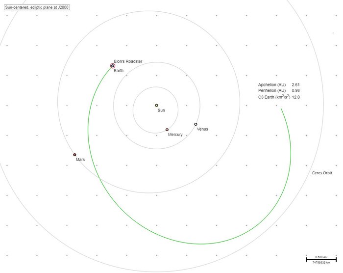 Думаю - "О, прикольно, Юпитер за миллиарды лет очистил солнечную систему от астероидов (понятно, некоторые он не успел собрать - те, что стукались о другие планеты и о Землю, в частности), ну, то есть собрал их всех на одну упорядоченною орбиту (пояс) и все тела и массы теперь сбалансированы и ничего (почти) нам уже не угрожает. - И думаю, - О, а еще туда, в этот пояс, сейчас направляется Tesla Roadster Илона Макса, который он туда запустил накануне, может даже он ударится о какой-нибудь астероид... и тот отлетит... а может и траекторию поменяет... и полетит к Земле?.. Погоди, теоретически, тут и ударяться не обязательно - можно просто нарушить тот самый баланс и выбить парочку, а может и тройку, астероидов и направить их к нашей планете...."