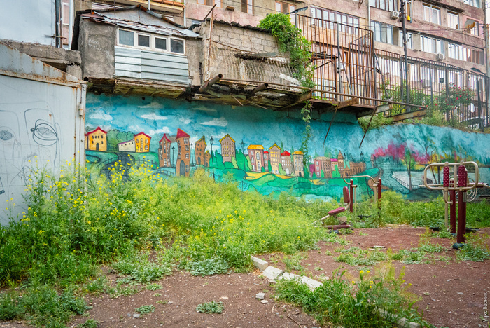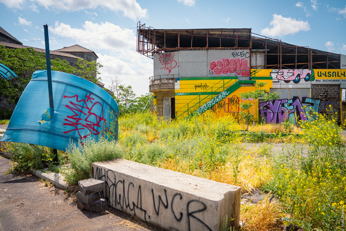Я забрался на крышу рынка. Влюбился в дом напротив. В забор. В стадион. В станцию метро, откуда меня выгнали, метнув вслед половую тряпку. Дошёл до завода Арарат — закрыто. Посмотрел на Раздан сверху. Побродил по улицам без цели.