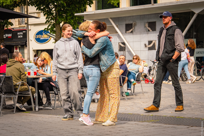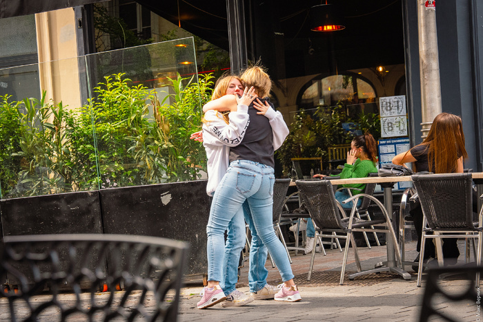 На тёпло-жёлтом фоне города разноцветными карандашами были нарисованы везде, и всюду, и вдоль, и поперёк гуляющие люди, их бесчисленные объятия и искренние улыбки. Как же мне всё это нравилось...