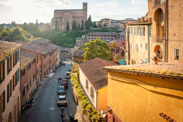 Но время поджимает. Надо ехать, но твёрдое желание вернуться засело занозой в сердце. Закат-маляр принялся неистово красить фасады Сиены рыжим...