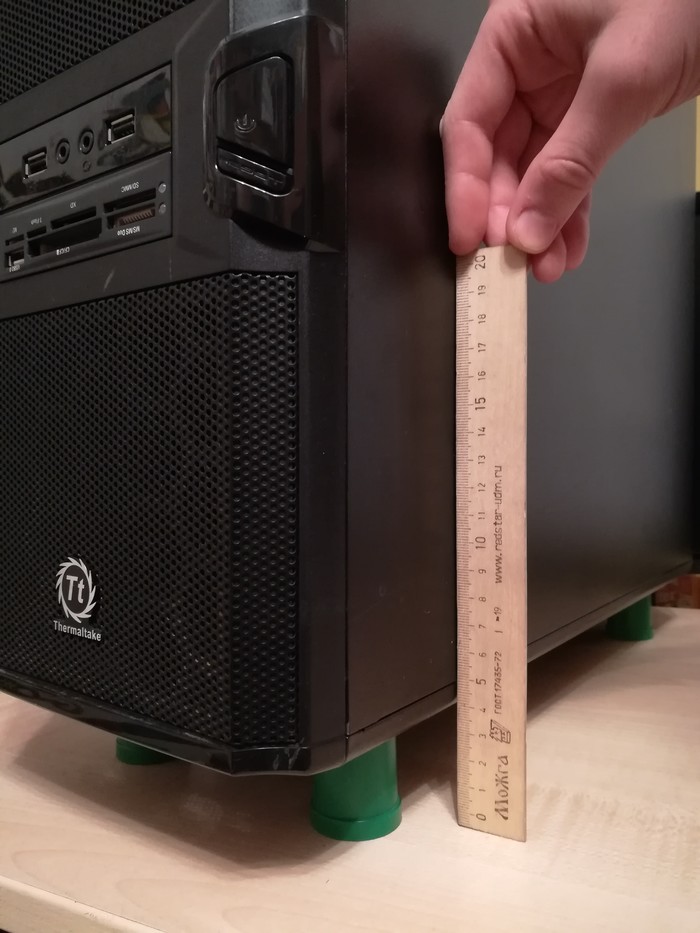 И как мы видим от поверхности стола до основания корпуса , совсем маленько (мы же помним, что обитать системному блоку в ворсистых окрестностях).