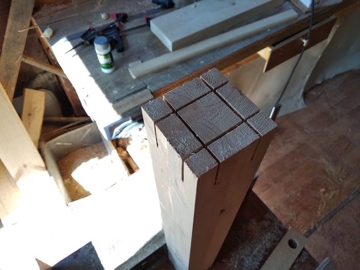 Как писал ранее, с деревом у нас проблемы, так что как обычно за основу взял строганый брусок 4*4 по 2 метра. На этот раз в пачке сосновых брусков из которых выбирал в магазине удалось набрать кедр (сибирская сосна). Цвет не такой белый как у сосны, меньше смолы. Нулевого сорта не было, пришлось брать 1-2.