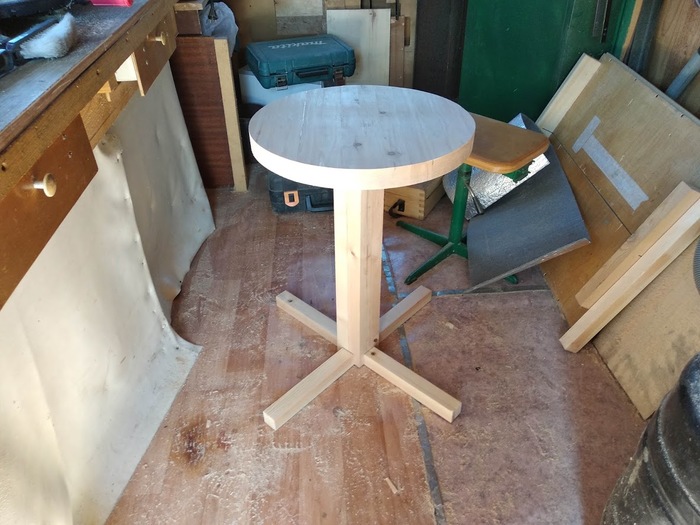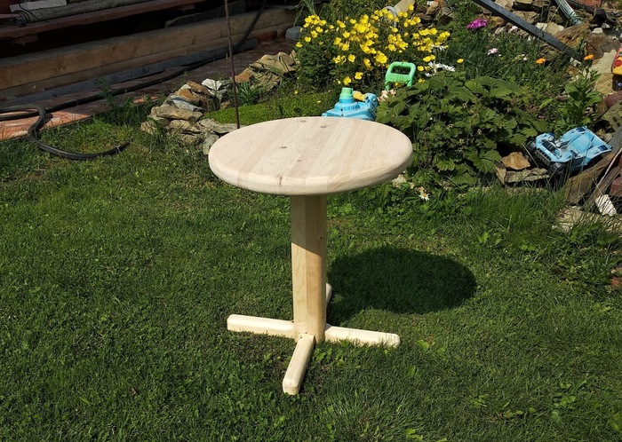 Получаю по ушам - высоко. Обрезаю до 55 см. (так получился министолик с заглавной фотографии).