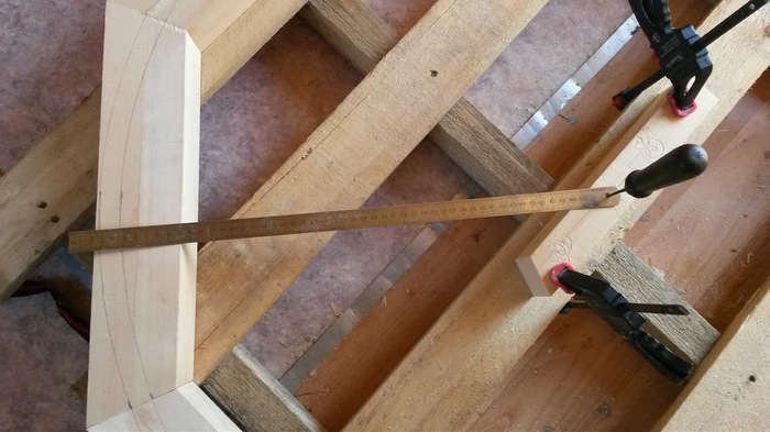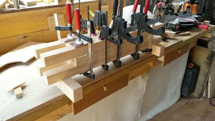 Пазы и шипы были отпилены циркуляркой (получилась ламель шириной 8 см.), а все вышеперечисленные детали собраны в такую конструкцию.