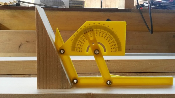И опять прикидка, уже с брусками нужных размеров. Передняя ножка под углом 90 градусов к сидушке и полу, задняя под углом (сейчас визуально пытаюсь поймать наиболее благоприятный). Угол спинки будет выставляться по факту.