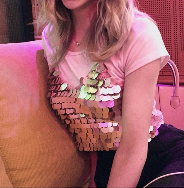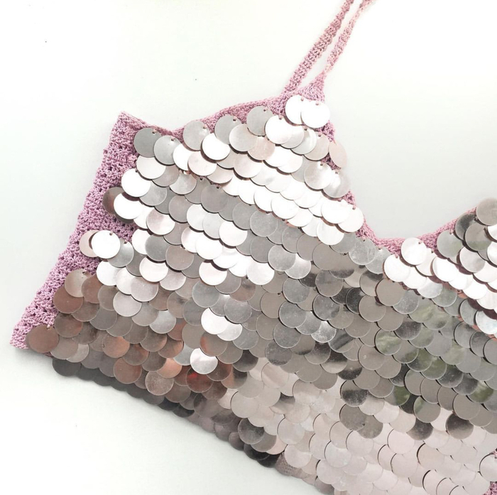 Связала базовую модель топа, но с декором из крупных пайеток. У себя я вызываю ассоциации с диско-шаром, у кого-то с боевой бронёй. А что скажет Пикабу? :)
