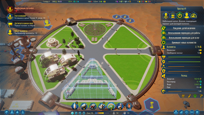 В первом куполе обветшал и пришел в негодность жилой блок, видать, загруженные работой дроны посчитали его ремонт не самым важным делом. Ну и хорошо, я все равно собирался его сносить и строить на его месте многоквартирный дом. Рабочих рук здесь мало, находящийся в этом куполе машиностроительный завод простаивает, расположенный рядом завод по производству полимеров - тоже.