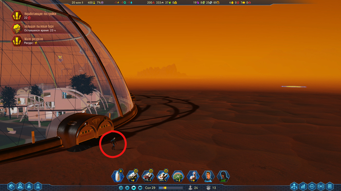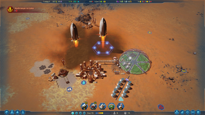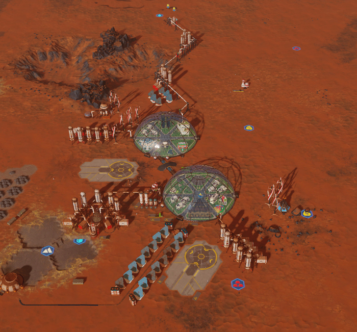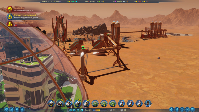 Сол 89. Борьба с нехваткой полимеров приносит свои плоды. После того, как я перевел на их производство людей, снятых с других участков, стало немного легче, поэтому я вкладываю ценный материал в энергетическую безопасность - прикручиваю к каждому куполу еще по одному генератору. Теперь в аварийной ситуации их энергии должно хватить на обогрев куполов и питание жилых блоков. Потихоньку разбираю лишние ветряки, чтобы не тратить на их ремонт запчасти. В перспективе планирую полностью перевести электропитание колонии на генераторы Стирлинга, работая в закрытом состоянии, они вообще не требуют ресурсов на обслуживание. Но сейчас колония не может себе этого позволить, потребуется слишком много электроники и... Да-да. П@#$меров.