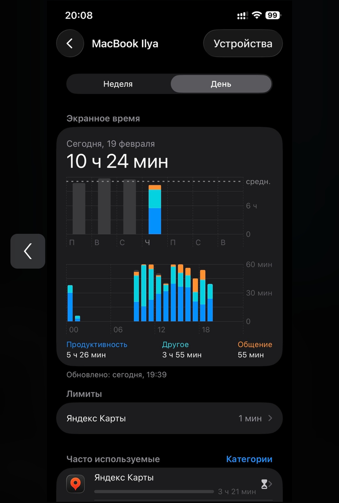 суть такова, что за неделю яндекс карты с ноута работали более 10 часов