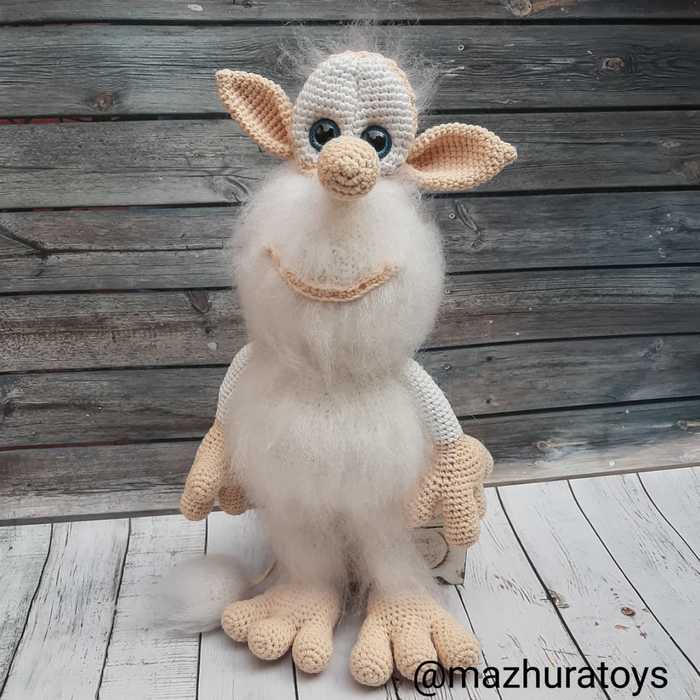 Вы не представляете ,как я счастлива , что довязала этого милейшего проказника! В моей практике вязания игрушек - самый сложный и долгий персонаж! Связан Буба на заказ. Примерно в середине вязания, я хотела отказаться от работы, положить его в дальний угол комода и забыть... Но потом я решила довязать, точнее домучать бедняжку или себя. И сейчас, глядя на фото и на него я понимаю, что все старания не зря! Как считаете?