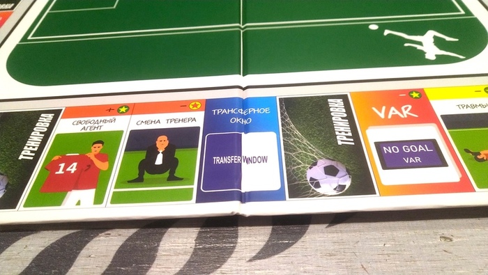 Разделённые разницей рубашек три колоды карт: основные игровые, карты для подсчёта голов (там просто карты «гол!») и специальные карты событий. Уже просто взглянув на карты, становится понятна половина предстоящего игрового процесса.
