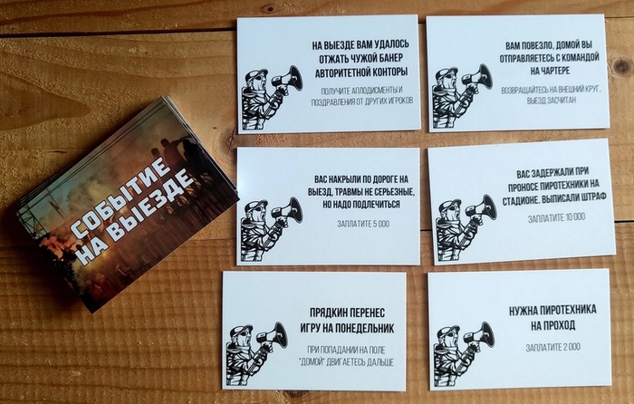 Вы покупаете, если можете, верхнюю карту выезда и отправляетесь на внутренний круг, где нас ждут приключения, которые так или иначе случались с фанатами в реальной жизни. С некоторой вероятностью выезд даже могут и не засчитать.