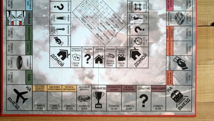 Претензия 1. Игровое поле. Складывается вчетверо и имеет неприятные канавки по сгибу. На сегодняшний день издатели умеют делать такие же поля без канавок. Также, на игровом поле есть …футбольное поле по центру, которое не имеет игрового функционала (атавизм от Монополии). Опять же все без исключения спрашивали «а что мы будем на этом поле делать?» Думаю, его единственный функционал - захламление игровыми компонентами. =)