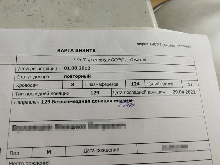 Итак, небольшой срез результатов моей донорской деятельности: почти 10 лет, 8 донаций цельной крови, 124 - плазмы, 18 - тромбоцитов, итого, по моим расчётам примерно 88 литров крови и её компонентов течёт ещё в ком-то кроме меня.