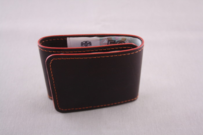 Воплотил еще одну задумку в жизнь, на этот раз кошелек раскладушку. Так как это прототип не обошлось без косяков. Кошель оказался туговат и пара, тройка стежков легли неправильно. Но как концепт он меня устроил. Ну и немного информации. Седельный шов, пробойник французский под имитацию машинного шва, нитки Yue Fung льняные, обработка уреза профессиональной химией Kenda Farben. Вместительность 4 карты и купюры. Внутри кожа крейзи хорс, а вот на счет наружной не скажу, не помню уже откуда и что за кусок. Внешняя кожа гораздо плотнее внутренней.