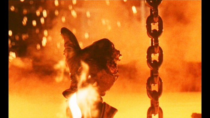 Возможно, некоторые помнят момент в фильме «Терминатор 2», когда Терминатор, опускающийся в расплавленный металл, поднимает большой палец. Очень эмоциональный момент. Он уже погрузился так, что всем понятно – спасти его нельзя в любом случае, он уже фактически мёртв. И вот этот отрезок – он как раз про последние моменты жизни. И что смерть была не напрасна (про всякие продолжения в этот момент лучше не вспоминать). Негатив от смерти и знание, что смерть была не напрасна, смешиваются, создавая сильный эмоциональный отклик.