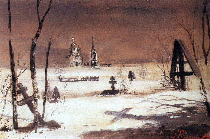 Или добавить дождь. Тут обычно надо выбирать, чтобы быть лаконичнее: или последние моменты умирания, или «разбавление» жизнью. Если у Васнецова вместо птиц («разбавление жизнью») будет идти дождь, то это будут «последние моменты умирания», картина будет более депрессивной.