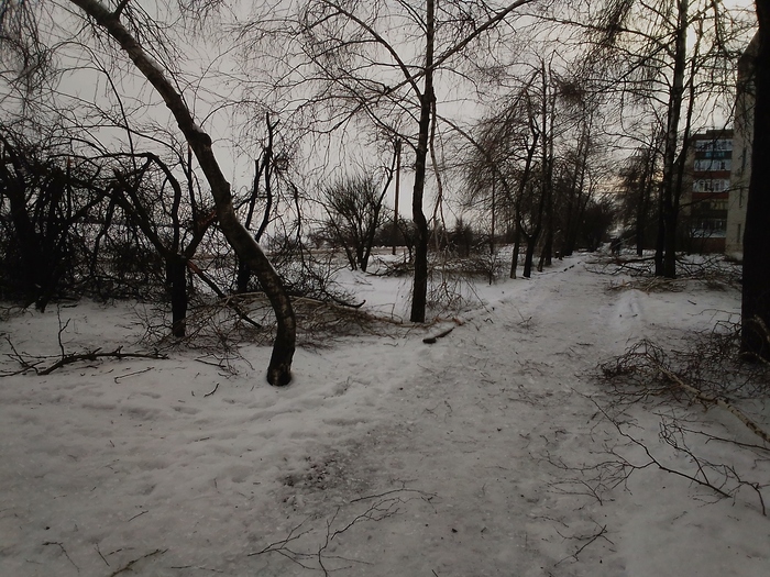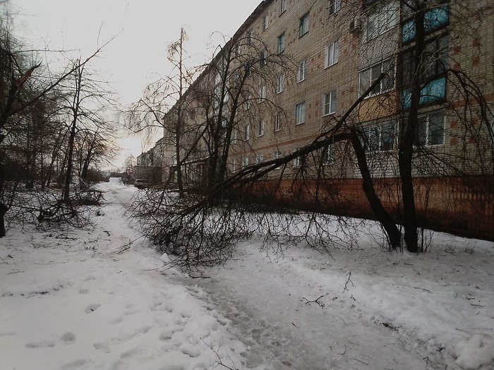 Пройдясь по микрорайону в утро понедельника (всё равно, электричество ещё не восстановили), заснял некоторые последствия ледяного дождя (всюду поломанные деревья и валяющиеся ветки):
