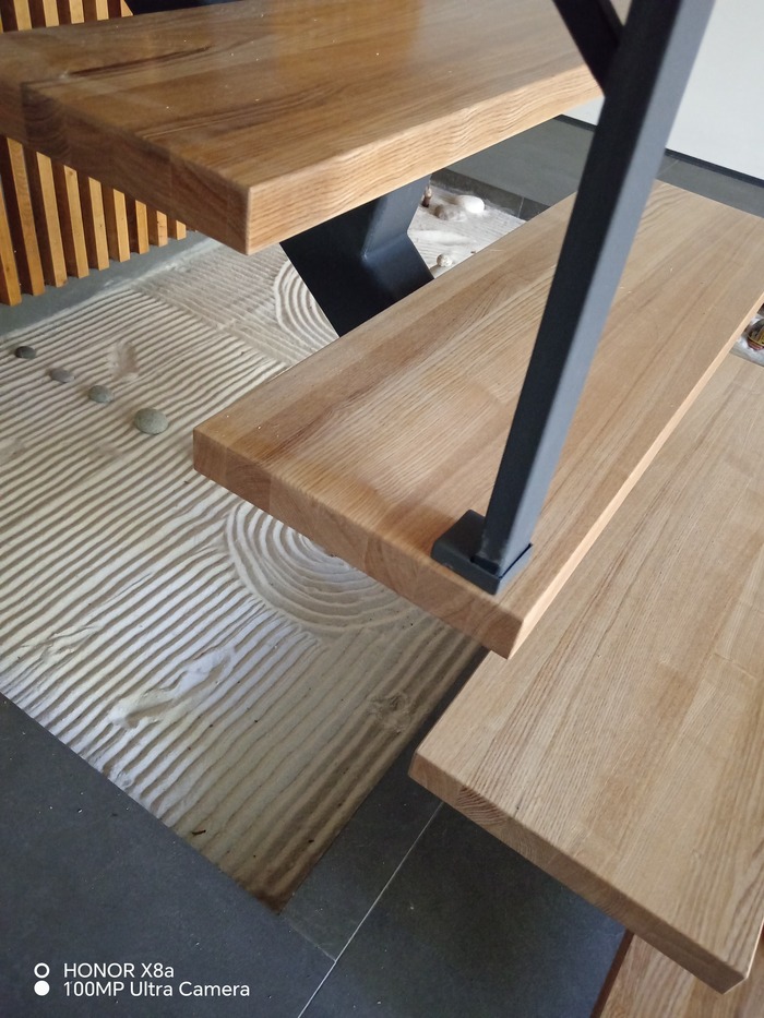 · История: Каждый такой слэб уникален. Наш был с красивыми сучками, трещинками и, главное — тем самым «живым краем», корой, которая сохранила природную, неповторимую форму.