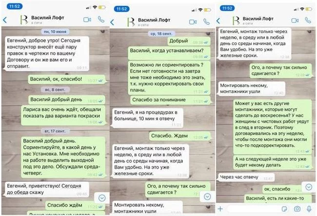 - необходимо приехать и снять несколько дополнительных замеров, после чего приезжает еще один разбирающийся в теме персонаж и снимает все размеры заново (это уже после переноса сроков на несколько недель).