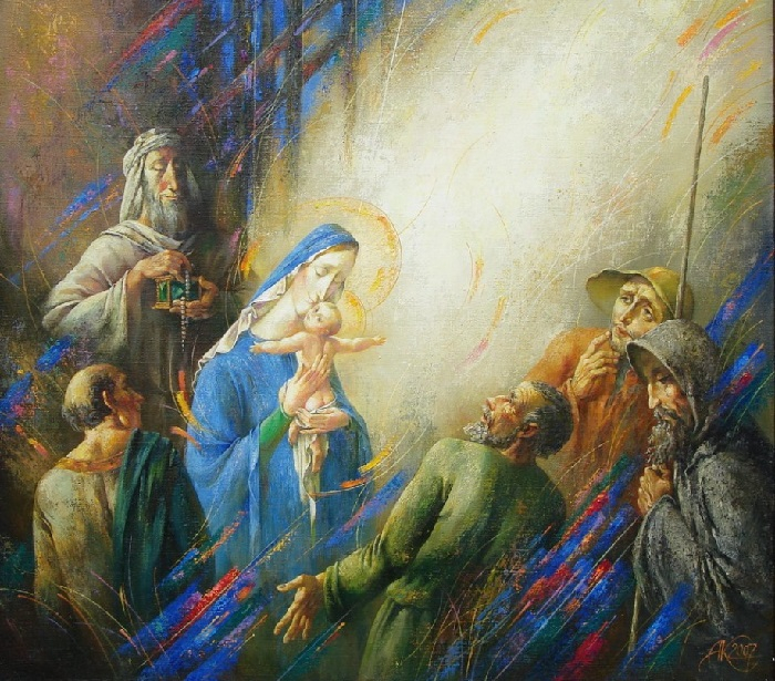 Его герои – простые люди, клоуны, музыканты, паломники, ангелы, святые.