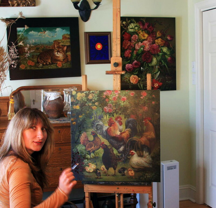 Насыщенные оттенки гармонично вписываются в композиции и подчеркивают задумку и идею художника. Мастерство художницы в технике ренессансной живописи сочетается с символизмом «магического реализма», создают неповторимую индивидуальную манеру.