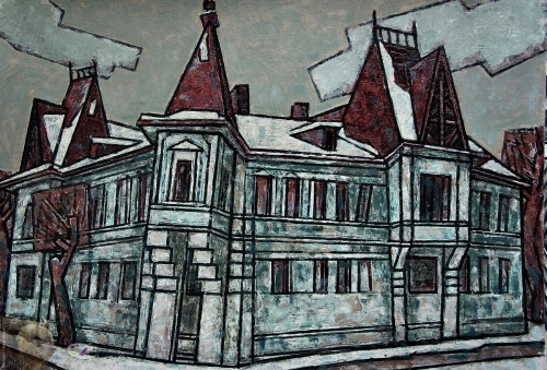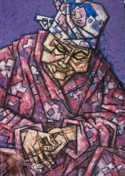 Двадцать лет назад художник Анатолий Ганкевич придумал особый стиль письма — имитация мозаики. Сложная игра фактуры работ и тематических смыслов – характерная особенность творчества художника.