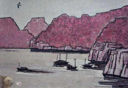 Серия работ Анатолия Ганкевича напоминает яркие монументальные мозаики московского метрополитена, монументализм ВДНХ, счастливые лица людей , улыбавшихся с советских плакатов. Эффект достигается удачной композицией и яркими красками.