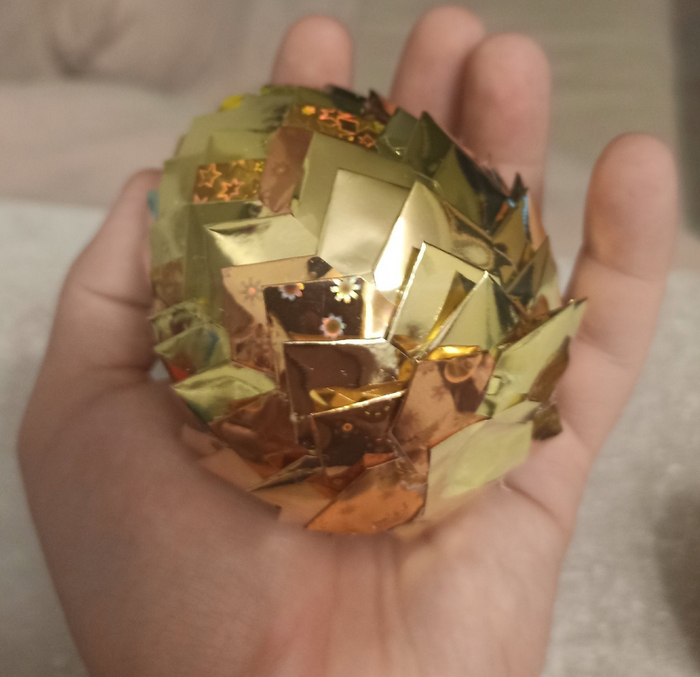 Так вот, приходит новое задание - обклеить эти яйца золотой бумагой, в виде шишек. Гы) а мы то думали, че с ними делать?... ну ладно. Приступаем к челенджу.