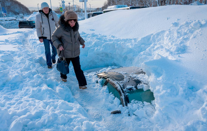 Последствия снегопада в Петропавловске-Камчатском//Фото: Alexander A. Piragis/Anadolu via Getty Images