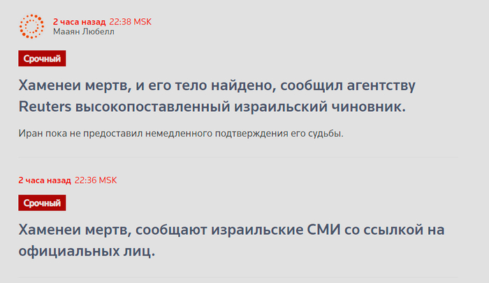 "Выбор нового руководителя не займет много времени. Члены Совета экспертов (органа, ответственного за выбор нового верховного лидера - прим. ТАСС) поклялись, что при выборе лидера не будут учитывать личные предпочтения, а будут выбирать на основе религиозных норм", - приводит его слова агентство ISNA.