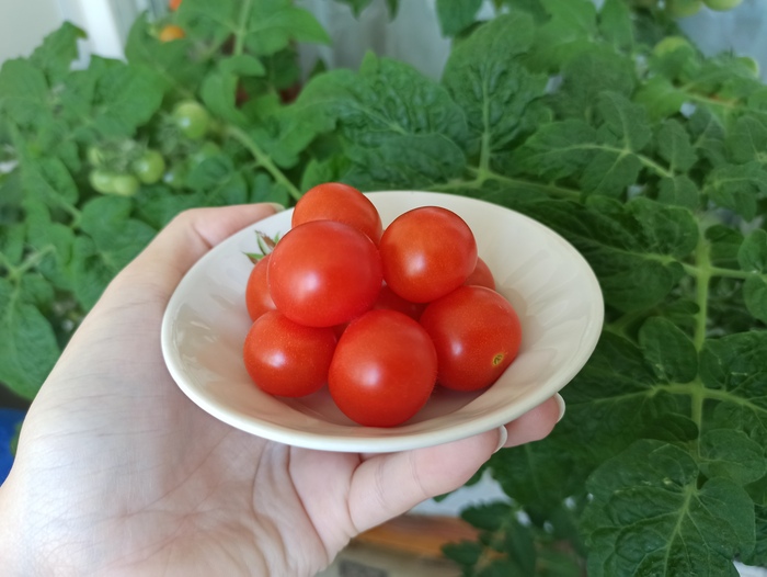 Продолжаю собирать помидоры на балконе. В этом году выросло довольно много. Зелёных тоже ещё много висит, поэтому считаю этот год удачным на помидоры 😄