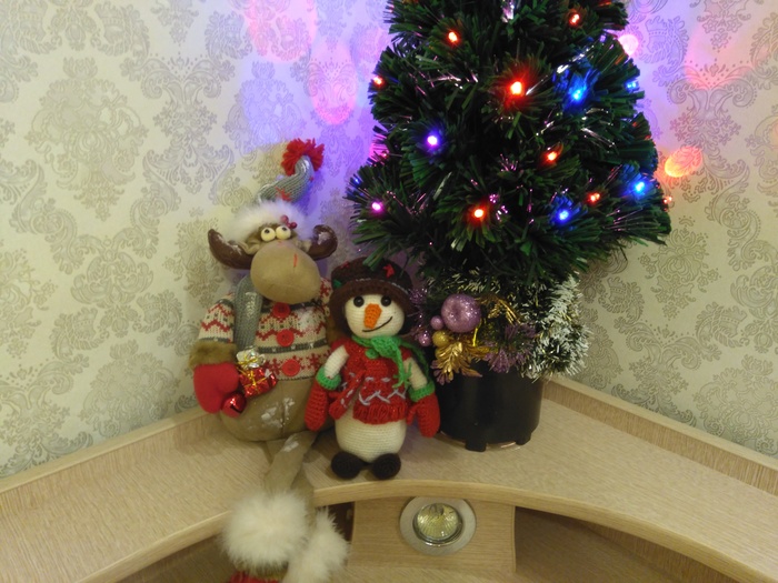 Снеговику мы отвели почётное место под ёлкой, рядом с расслабленным канадским лосем, подаренным мне братом: