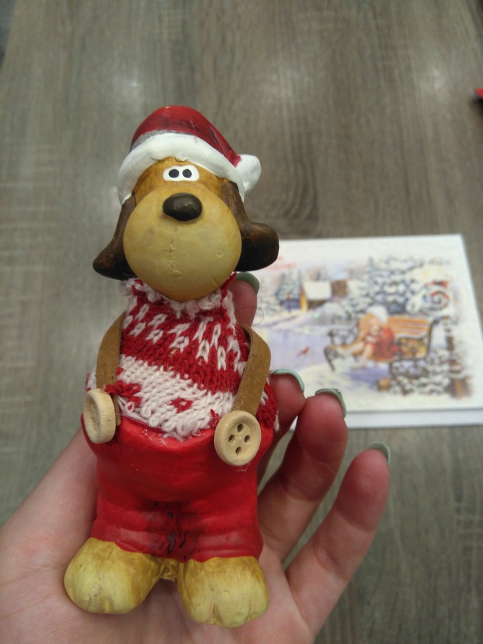 Так, как рот у меня был безнадёжно забит конфетами, на гастрономический эксперимент я решила не идти и отложила икру пока что в сторону. На фото, кстати, видно ещё один подарочек из свёртка (который был упакован как большая конфета) символ нового года - желтый пёс! У меня пока что не было ни одного, так что благодаря этому подарку, удача, надеюсь, не отвернётся от меня в этом году: