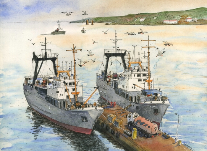 1356 Merk82 Лига Художников Корабли 5 дней назад Давно тут ничего не выкладывал)) [моё] Акварель Скетч Севастополь Судно Рыболовное судно Траулер Сртм Пирс Причал 109 50 5 2 2 1 1 Ещё 2