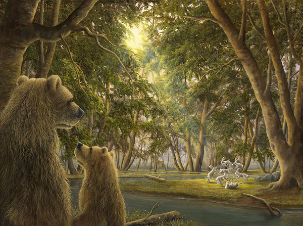 Умиротворяющие картины с медведями, бабочками, зайцами, слонами и прочей живностью от современного художника Роберта Бисселла.